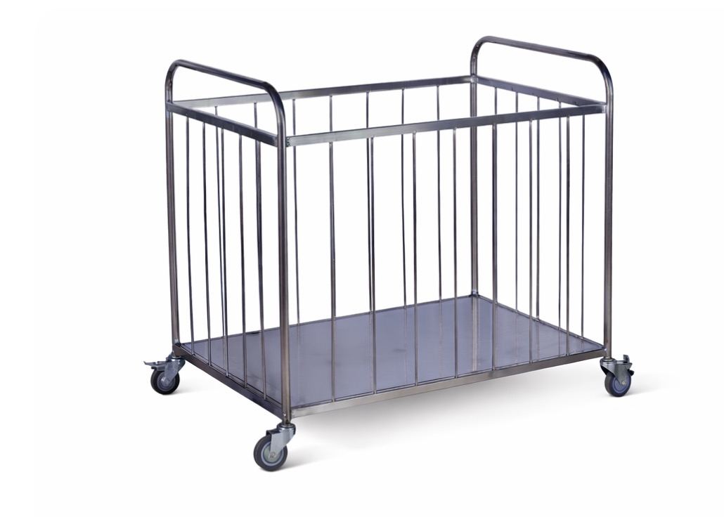 Тележки для белья из нержавеющей стали используются в гостиницах, санаториях, медицинских центрах, домах престарелых и прачечных для безопасной и удобной транспортировки текстиля.